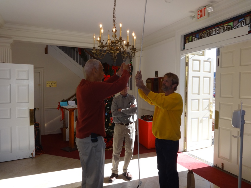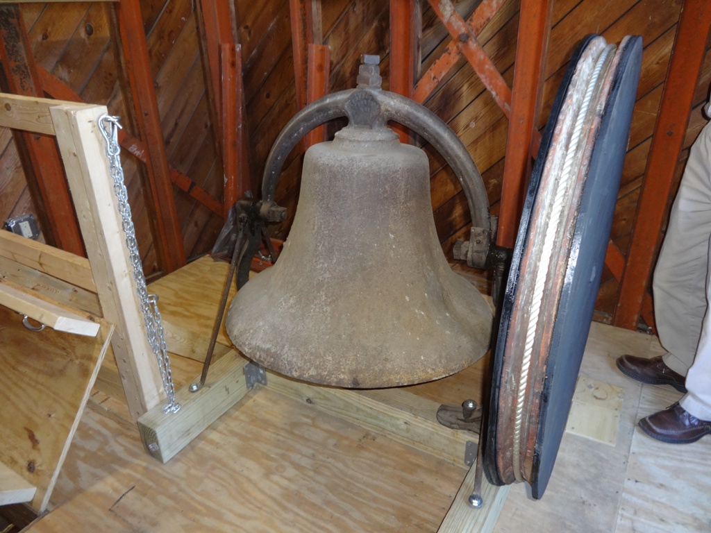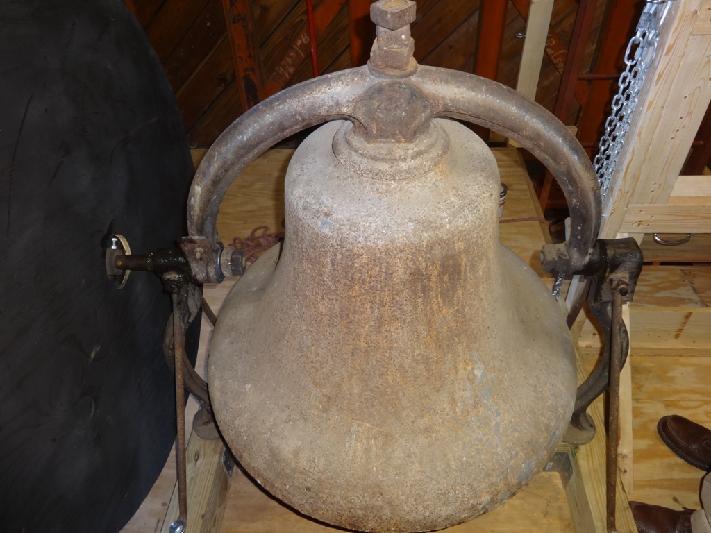 Working with the Colonial Williamsburg Foundation and the First Baptist Church, Carl Rickershauser owner of Coastal Clock and Chime lowered the bell from its perch high in the tower to its new location and mounted the historic bell on new cribbing to support the bell . He gave the bell a thorough going over and replaced worn or missing parts in order to get the historic bell ready to ring for the 240th anniversary of the church and the LET FREEDOM RING CHALLENGE for the month of February.