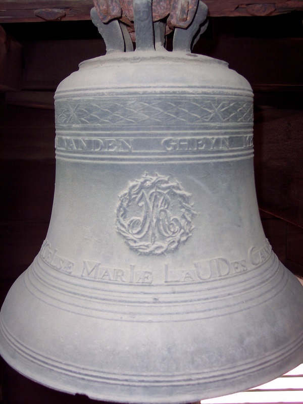 Note insertion of lag screw and washers in attempts to stabilize bell over the years.