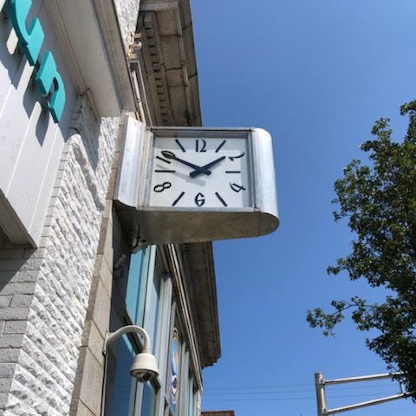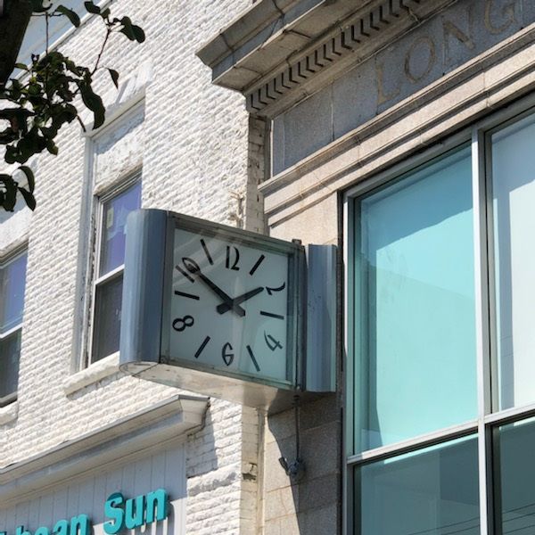 This Stainless steel clock has been updated with new movements, LED lighting, and a digital clock controller. The building was the old Bank of America building in Longbranch, New Jersey. Now the building has been renovated and is being used by the city of Longbranch!