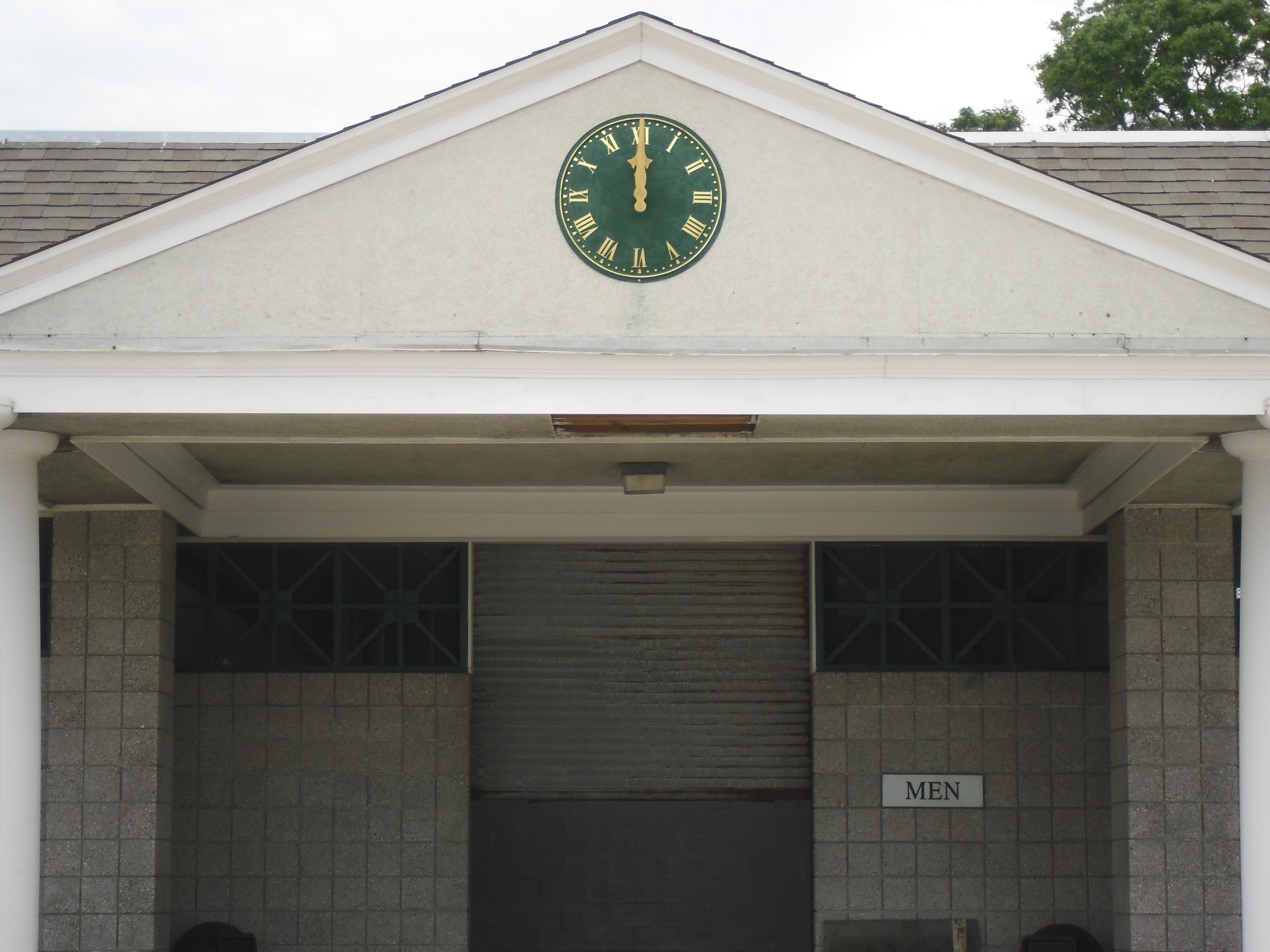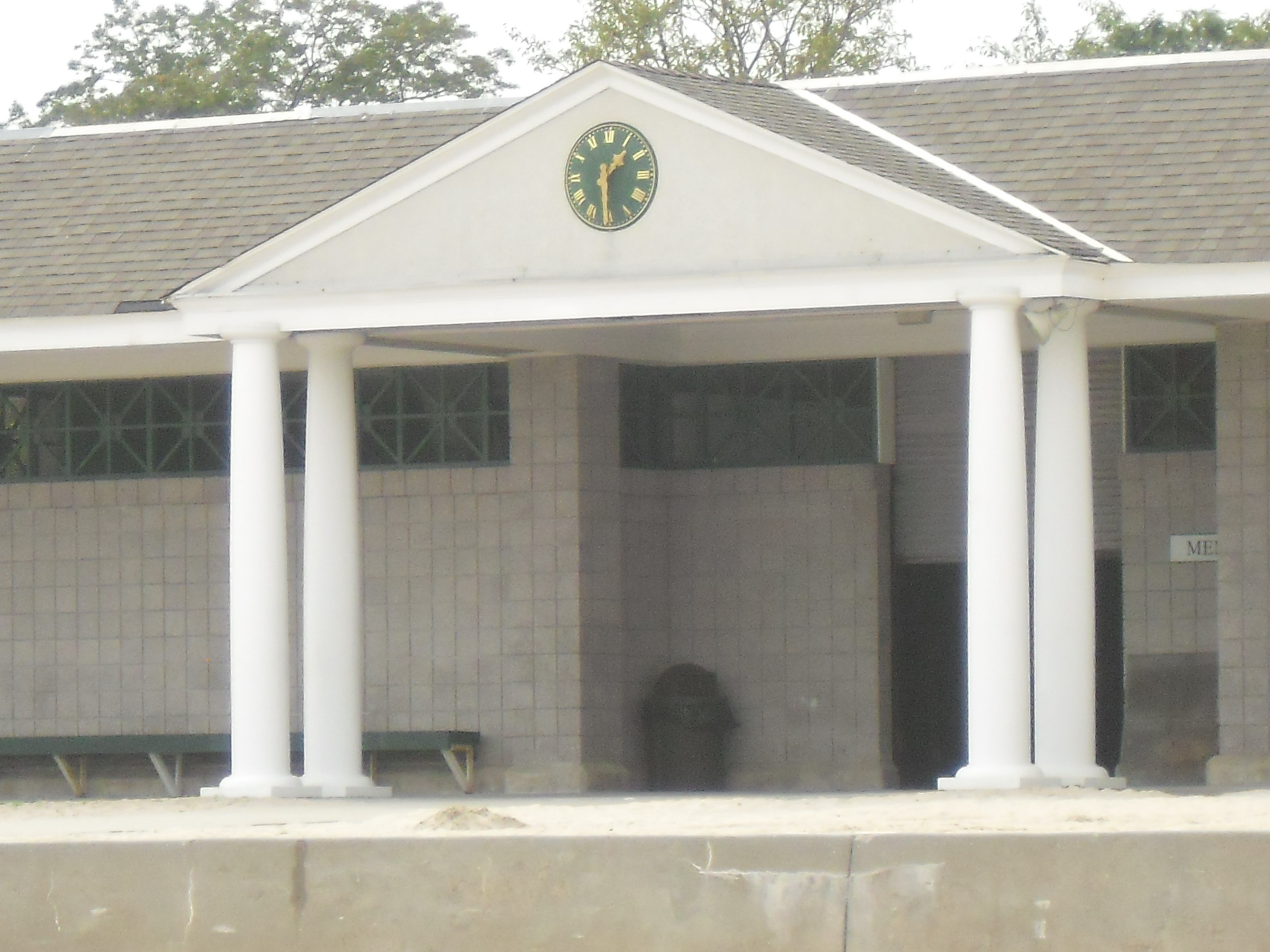 This soon to be fantastic looking facility can be found in Glenn Island New York. When we were called to the site, it was still a work in progress. Carl from Coastal Clock and Chime installed the two clocks, each over the restroom area. We could not have asked for a better view from our "office" that day.